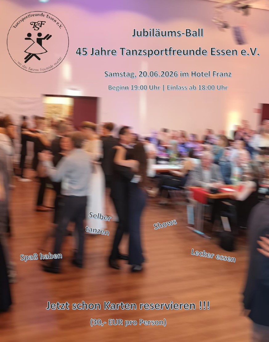 Am 20.06.2026 feiern die Tanzsportfreunde das 45-jährige Bestehen des Vereins mit einem Ball im Hotel Franz.