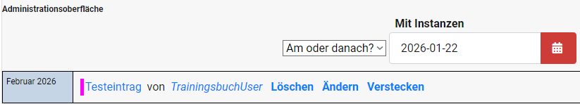 • Man klickt einen eigenen Eintrag in der Trainingsbuch-Liste an